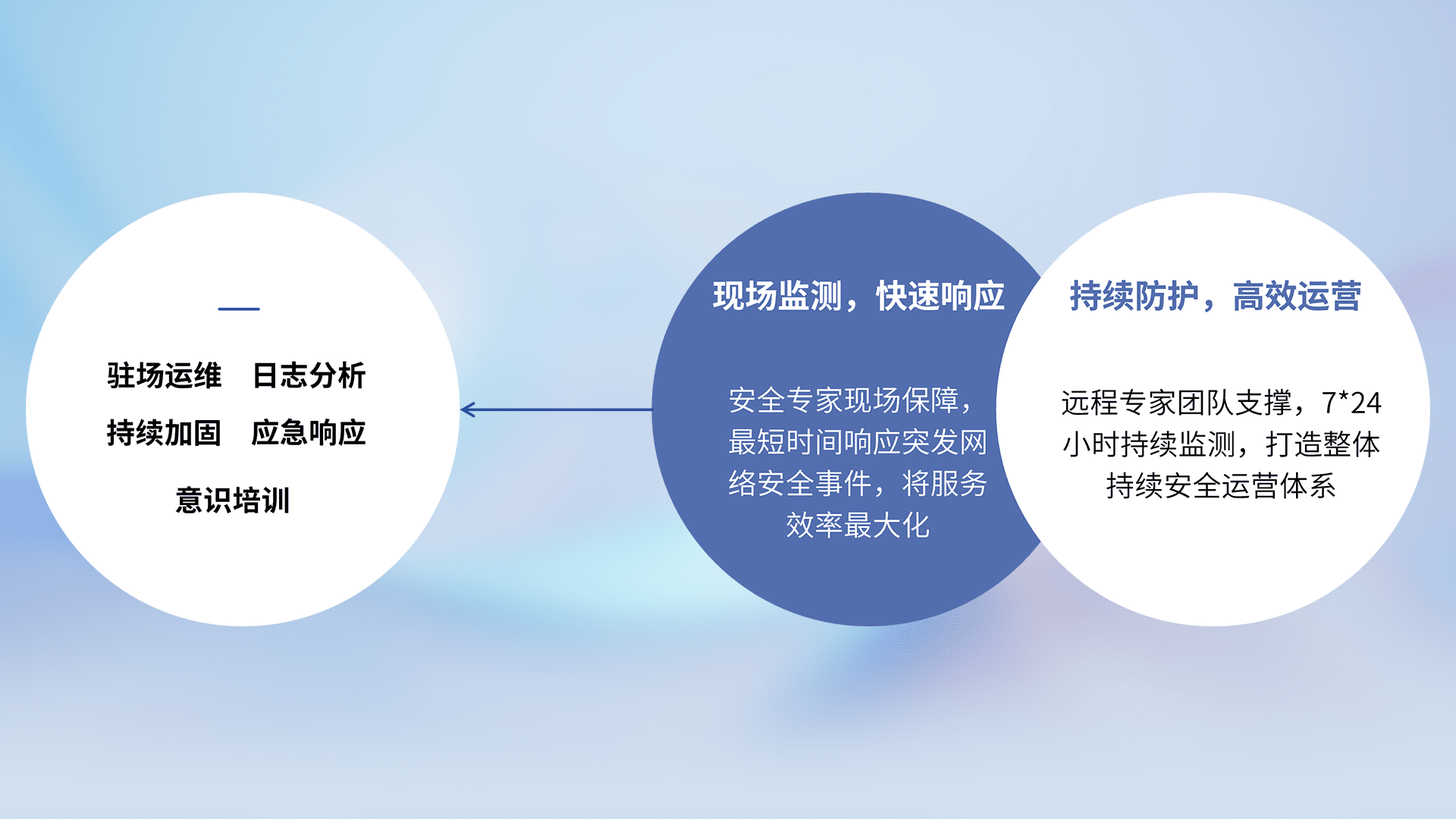 针对客户行业特性,,,,提供专属的一站式安全管理服务,,帮助客户全面感知网络空间威胁,,,通过安全专家的线上、、线下防护支持,,,实现风险闭环,,,,将安全保障常态化,,,,为客户打造常态化安全运维运营服务。。。。